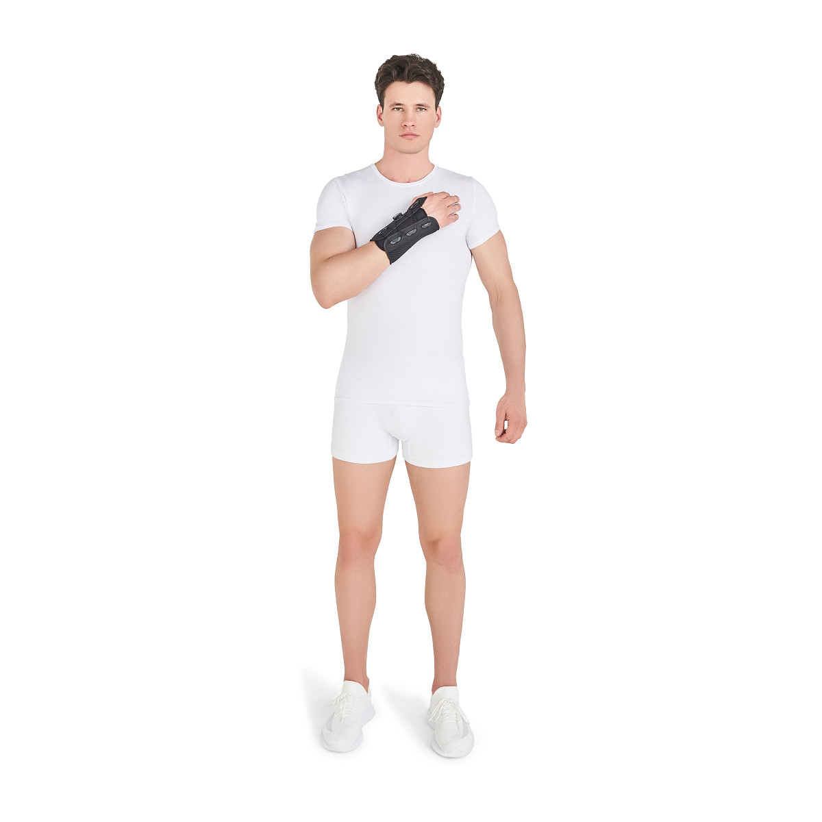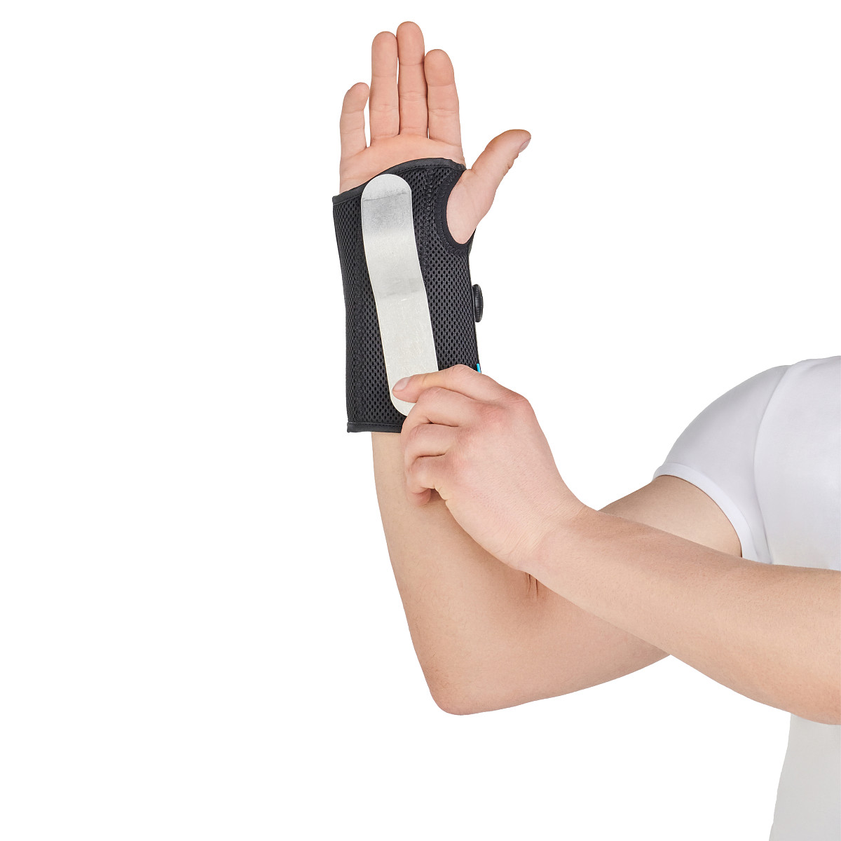 - Премоделированная алюминиевая шина по ладонной поверхности для надежной стабилизации сустава.